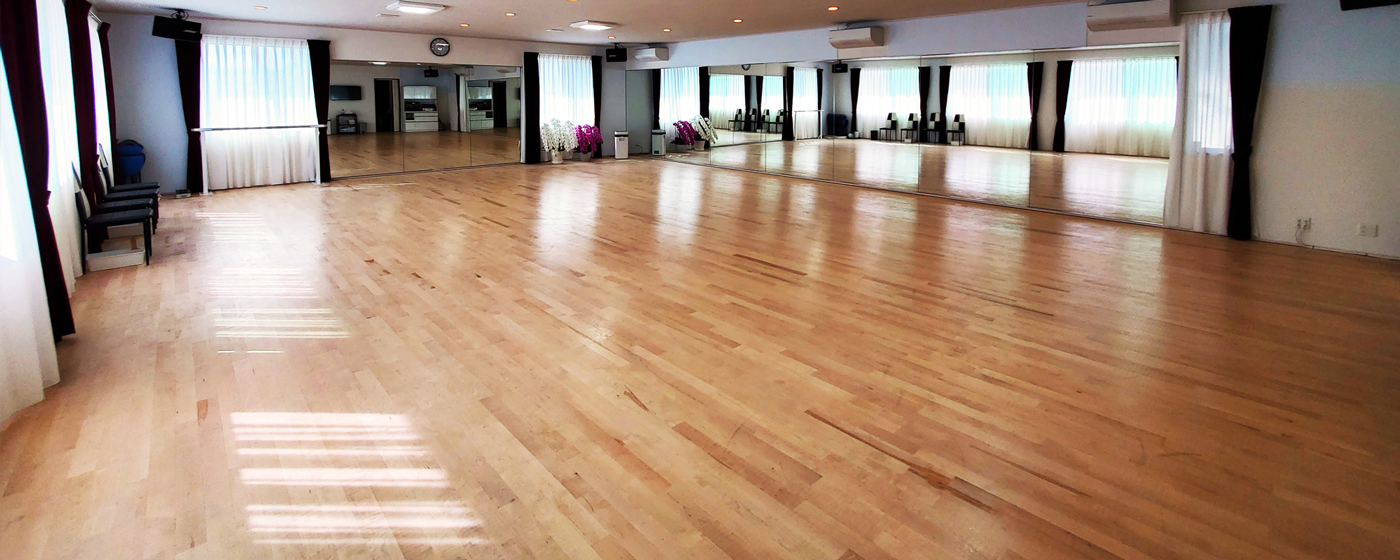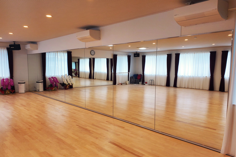 正面は全面鏡張りで常に自分の踊りをチェック出来ます。側面も鏡が多いので色々な角度から自分をチェックできます。