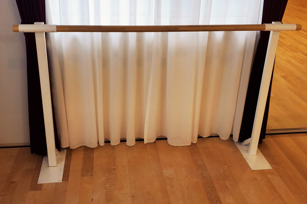 バレエレッスンバーを設置してありますので、レッスン前の準備運動やストレッチ、練習などに活用下さい。